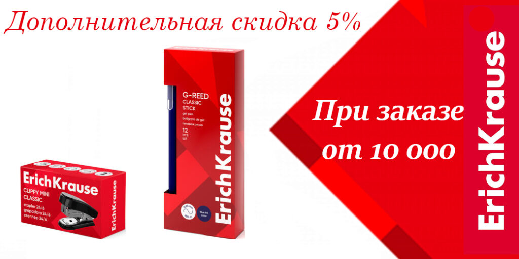 Дополнительная скидка 5% (к текущей персональной скидке) при покупке товаров бренда Erich Krause от 10 000 рублей (скидка действует только на данный бренд)!