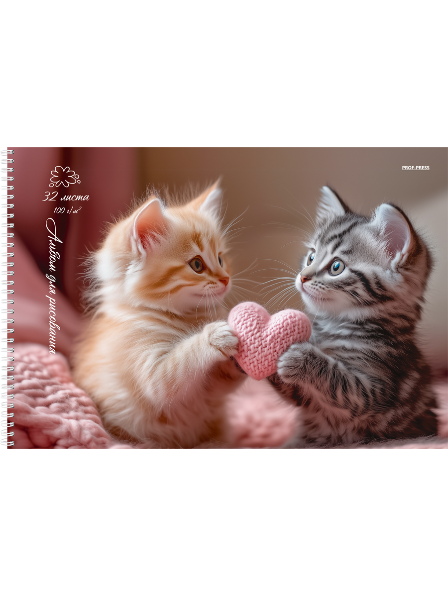Альбом для рисования 32л на гребне ПАРА МИЛЫХ КОТЯТ Проф-пресс 32-7873