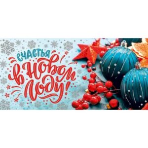 Открытка среднего формата НТ-10916 Счастья и удачи в Новом году! Текст (блестки в лаке, конгревное