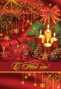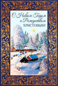 Открытка среднего формата НТ-14111 С новым годом и Рождеством Христовым! Без текс. (золотая фольга)