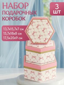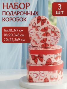 Набор подарочных коробок 3 в 1 в форме сердца «Милые бантики» 16х18,3х7-20х22,3х9 см КОР-7510
