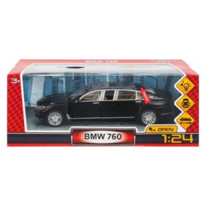 Игрушка Машина Технопарк металл BMW 760 22 см, свет-звук, двери, капот, багаж, инерция, черный 4914