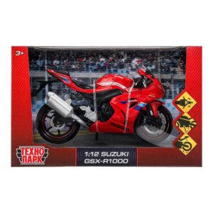Игрушка Модель Технопарк металл SUZUKI GSX-R 1000 МОТОЦИКЛ 17 см, вращающийся руль, подвеска 9199
