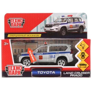 Игрушка Машина Технопарк металл TOYOTA PRADO ПОЛИЦИЯ 12 см, свет-звук, двери, багаж, инерция 3322