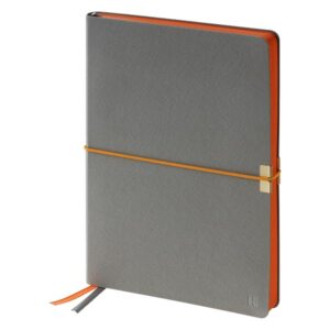 Ежедневник недатированный А5 136л кожзам Berlingo «Casual» с резинкой светло-серый оранжевый 0005