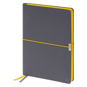 Ежедневник недатированный А5 136л кожзам Berlingo «Casual» с резинкой серый желтый срез 0006