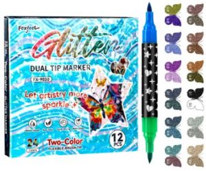 Набор маркеров глиттер 12 шт 24 цв 1-5мм DP-211 двусторонние кисть черный корп в к/к 2118