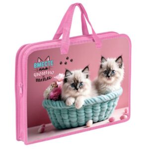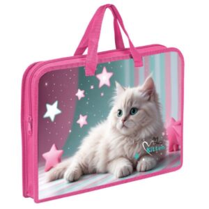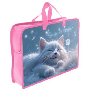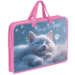 Папка на молнии с ручками 1 отд А4 Белый пушистик 350*265*60мм с регулируемой ручкой полиэстер 88882