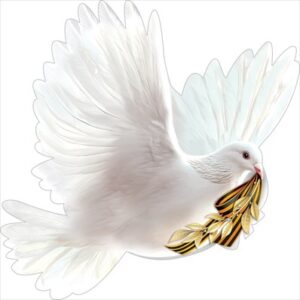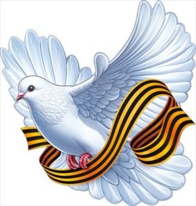Украшение на скотче А5 «Голубь» (с георгиевской лентой и веточкой в клюве) 2639