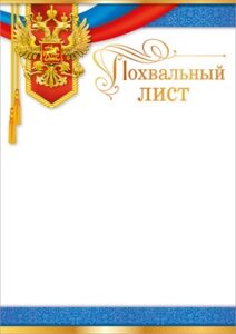 Грамота Похвальный лист с Российской символикой (для принтера, картон 200 г/м) Ш-7377