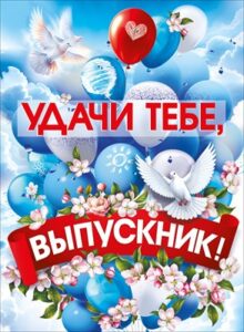Плакат А2 «Удачи тебе, выпускник!» (цветы, голуби и шарики на фоне неба) 1494