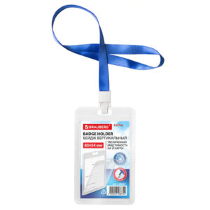 Бейдж вертикальный 85х54 мм на 2 карты с лентой 45 см Защита от влаги и пыли BRAUBERG EXTRA 238827