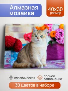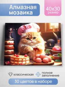 Алмазная мозаика (клас.) 30х40 см, с подр., с полн. заполн. (30 цв.) Котик-пекарь (Арт. НД-0378)