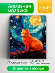 Алмазная мозаика (клас.) 30х40 см, с подр., с полн. заполн. (30цв) Кот Ван Гога (Арт. НД-0409)