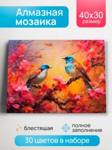 Алмазная мозаика (класс.) 30х40 см, с подр., с полн. заполн. (30цв) Птицы на ветке (Арт. НД-0566)