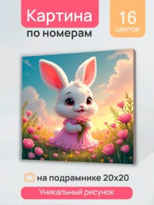 Холст с красками 20х20 см по номерам (в коробке) (16 цв.) Зайка в поле с цветами (арт.Х-0743)