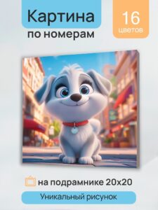 Холст с красками 20х20 см по номерам (в коробке) (16 цв.) Пёсик на прогулке (арт.Х-0752)