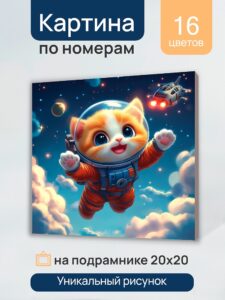 Холст с красками 20х20 см по номерам (в коробке) (16 цв.) Рыжий котик-космонавт (арт.Х-0749)
