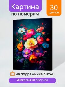 Холст с красками 30×40 см по номерам (в коробке) (30 цв.) Цветы на темном фоне (арт.ХК-3271)