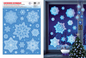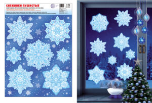 Новогодние наклейки на окна НМТ1 А4+ Новогодние снежинки видны с обеих сторон многоразовые 15344