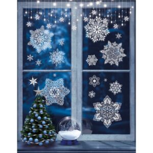 Наклейки на окна НМТ1-15328 Снежинки волшебные видны с обеих сторон многоразовые