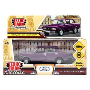 Игрушка Машина Технопарк металл LADA ВАЗ-2105 1997 12 см, двери, багаж, инерция, баклажан 4882