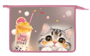 Папка для тетрадей на молнии 1отд А4 Кофейные коты пластик в индив.упак. Hatber