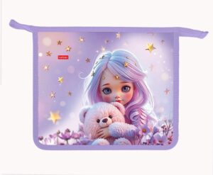 Пенал 200х140мм 1 отделение на молнии с 2-мя откид. планками -Лилу- ткань/картон в индив.упак.