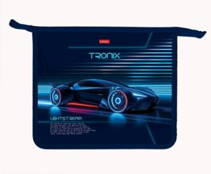 Пенал 200х140мм 1 отделение на молнии с 2-мя откид. планками- TRONIX- ткань/картон в индив.упак.