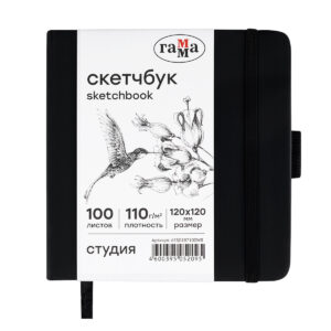 Скетчбук 100л 120*120 Гамма «Студия» черный твердая обложка на резинке белая 110г/м2 65S01B7100WB