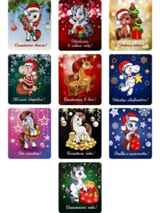 Пакет подарочный Набор 35 шт. 5 дизайнов 13,5*22см Добрые мордашки завязки в комп-те ППК-7660