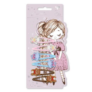Набор заколок для волос клик-клак Зверята 6шт 5,2 см розовый, голубой, коричневый арт. 71744