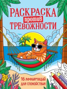 РАСКРАСКА ПРОТИВ ТРЕВОЖНОСТИ. Котик на чиле А5
