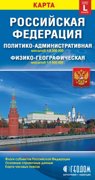 КАРТА Складная карта Российская Федерация. Политическая+Физическая (размер L) М 1:8,3 млн/1:9,5 млн12,3х23,5 (ГеоДом)