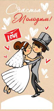 Конверт для денег КД-13337 Счастья молодым! (Пластизоль)