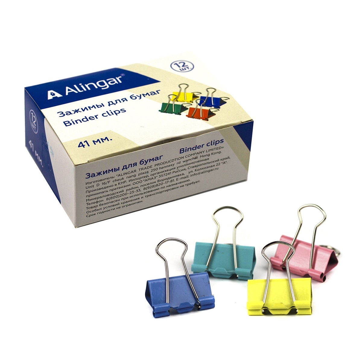 Зажимы для бумаг 41мм Alingar цветные, уп. 12 шт. 3958
