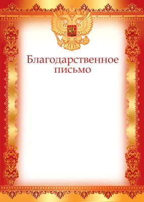 Грамота А4 Благодарственное письмо с РФ (бумага мелов 170г/м) Ш-12597