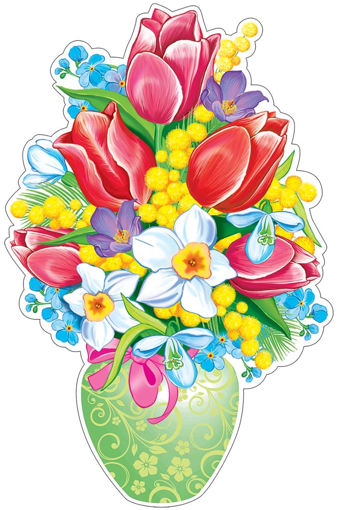 Плакат вырубной А4 Ваза весенняя с цветами (УФ-лак) Ф-14342