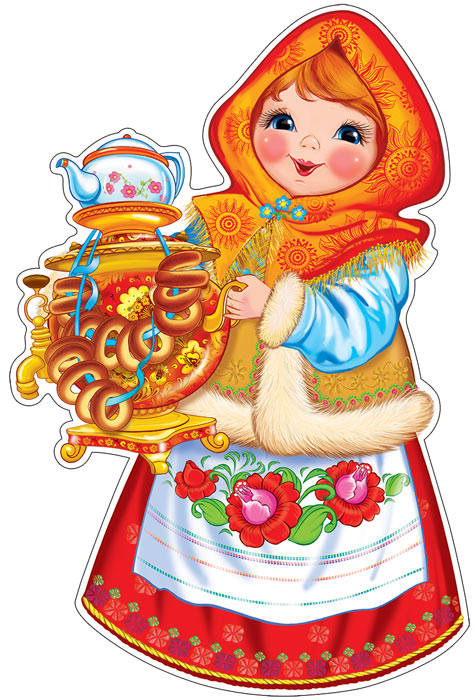 Плакат вырубной А3. Девочка с самоваром с блестками в лаке Ф-13518