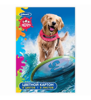 Картон цветной А4 8л 8цв Cullinan «Зверята» 7867