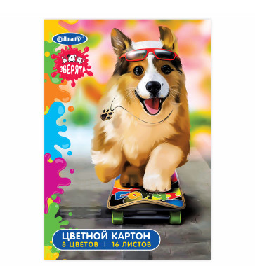 Картон цветной 16л 8цв А4 Cullinan «Зверята» 7881