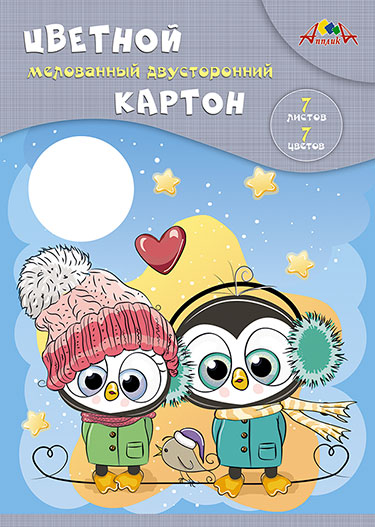 Цветной картон 7цв А4 двухсторон. мелов. Уф-лак «Друзья» 8313