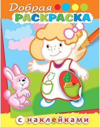 Раскраска книжка А5 цветной блок с наклейками на скобе Добрая раскраска-Девочка с зайчиком-