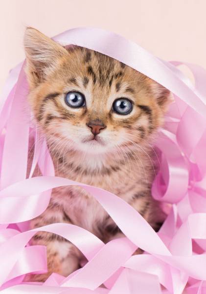 Алмазная мозаика 20х30 (класс.) без подр. с част.заполн.(20 цв) Котенок в розовых лентах Арт. ACF082 (помята упаковка)