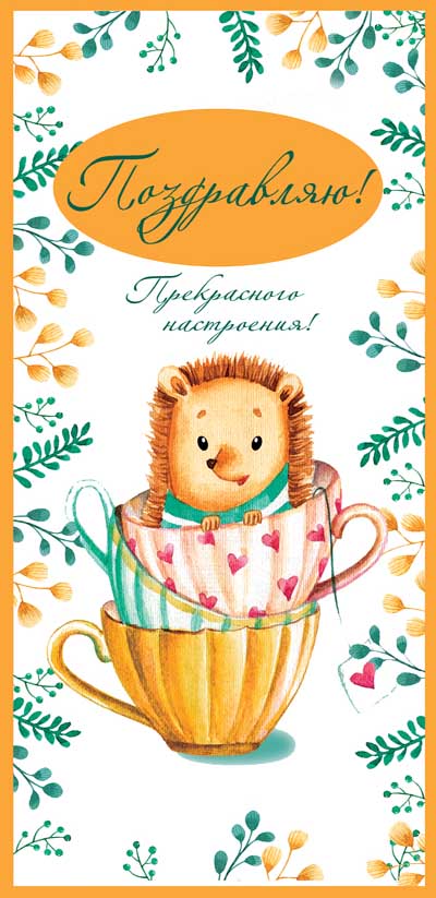 Конверт для денег КД1-11013 Поздравляю! Прекрасного настроения! Вертикальный