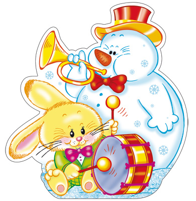 Плакат вырубной А4 Зайчик с барабаном и снеговиком (блестки в лаке) ФМ-14459