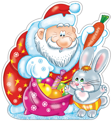 Плакат вырубной А4 Зайчик с Дедом Морозом (блестки в лаке) ФМ-14460
