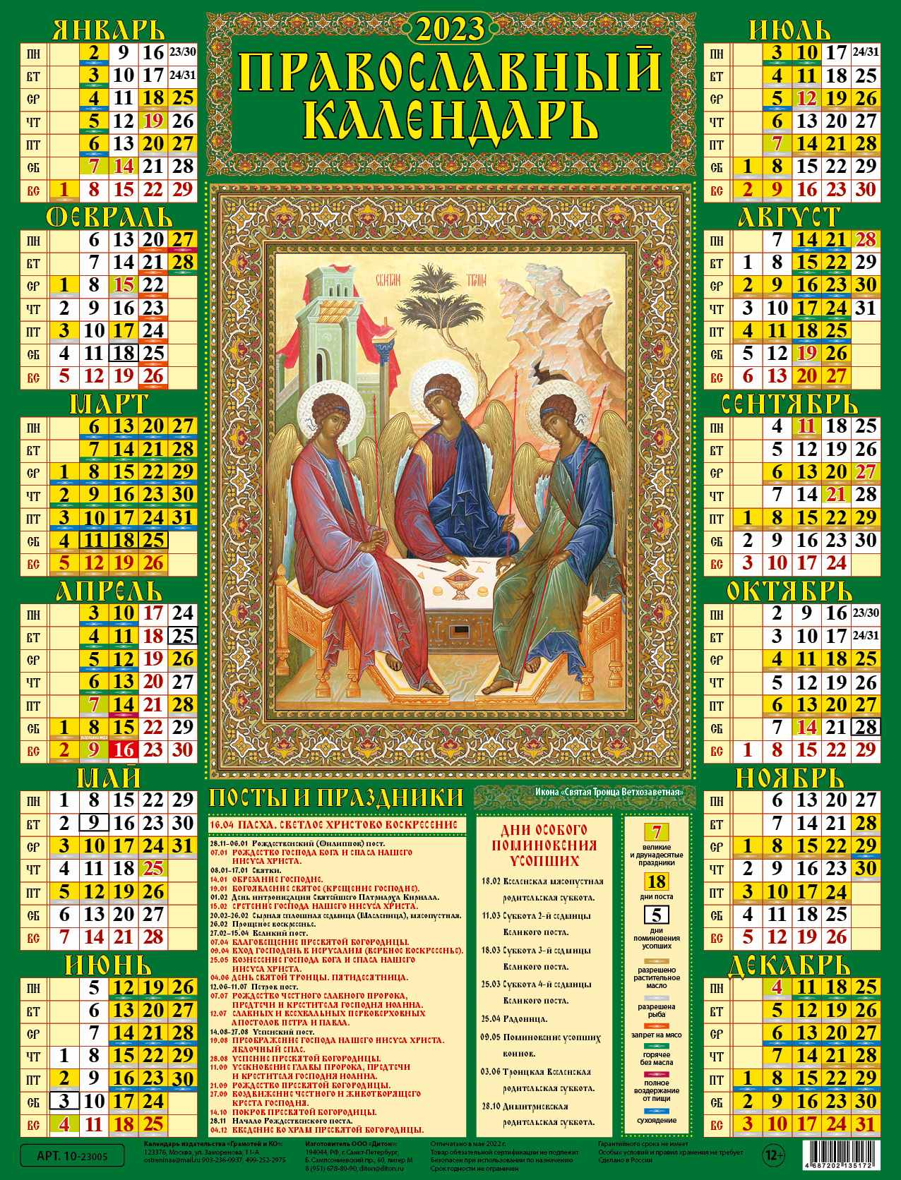 Календарь-плакат 2023 А2 Троица Ветхозаветная /КРАТНО 5ШТ/10-23005