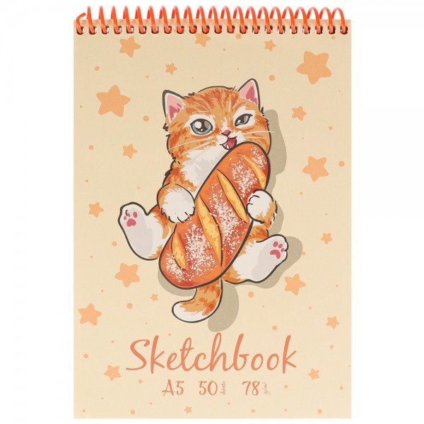 Скетчбук А5 50л Котёнок жест подлож на спирали С50-3344