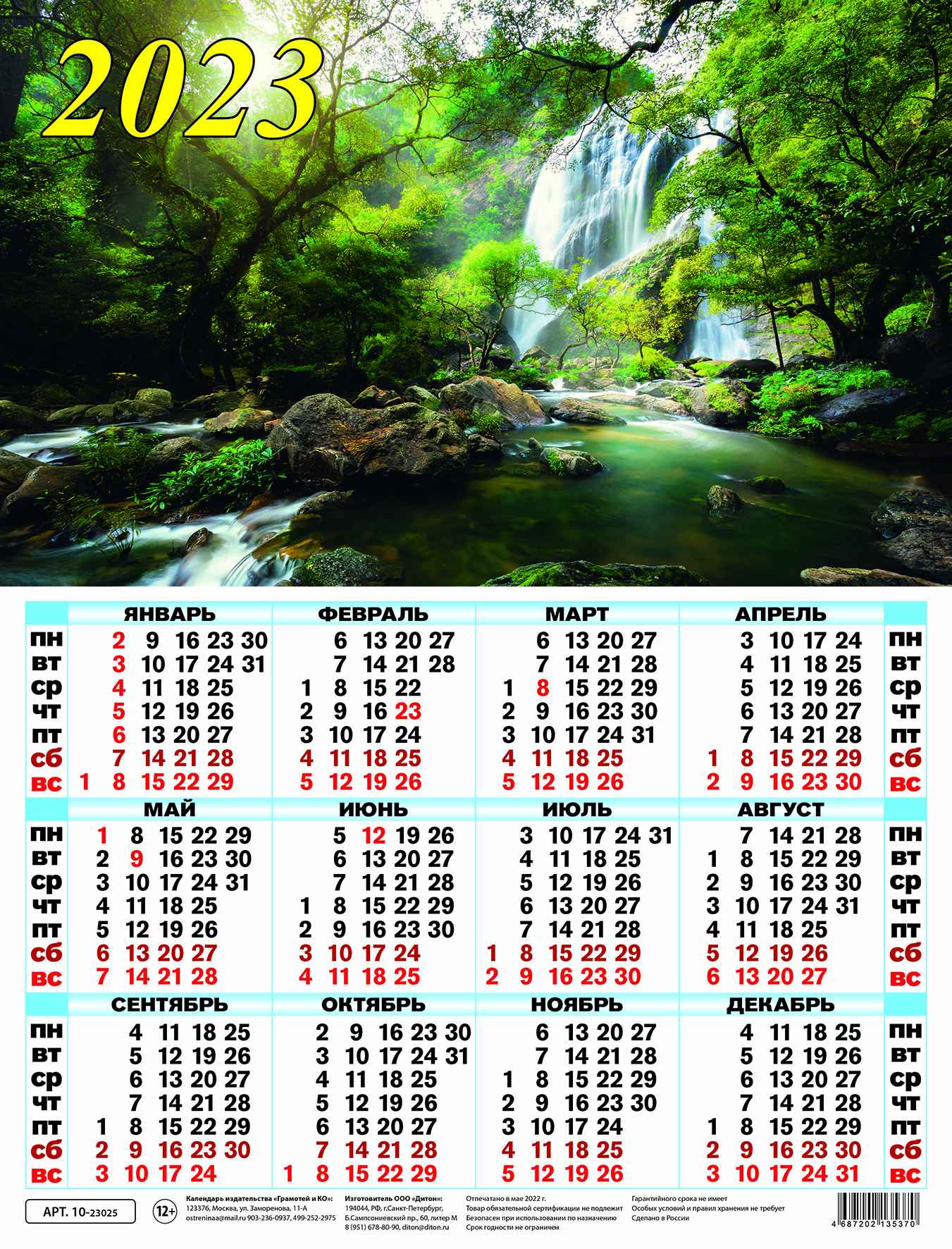 Календарь-плакат 2023 А2 Водопад 10-23025
